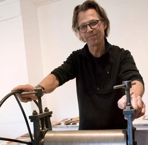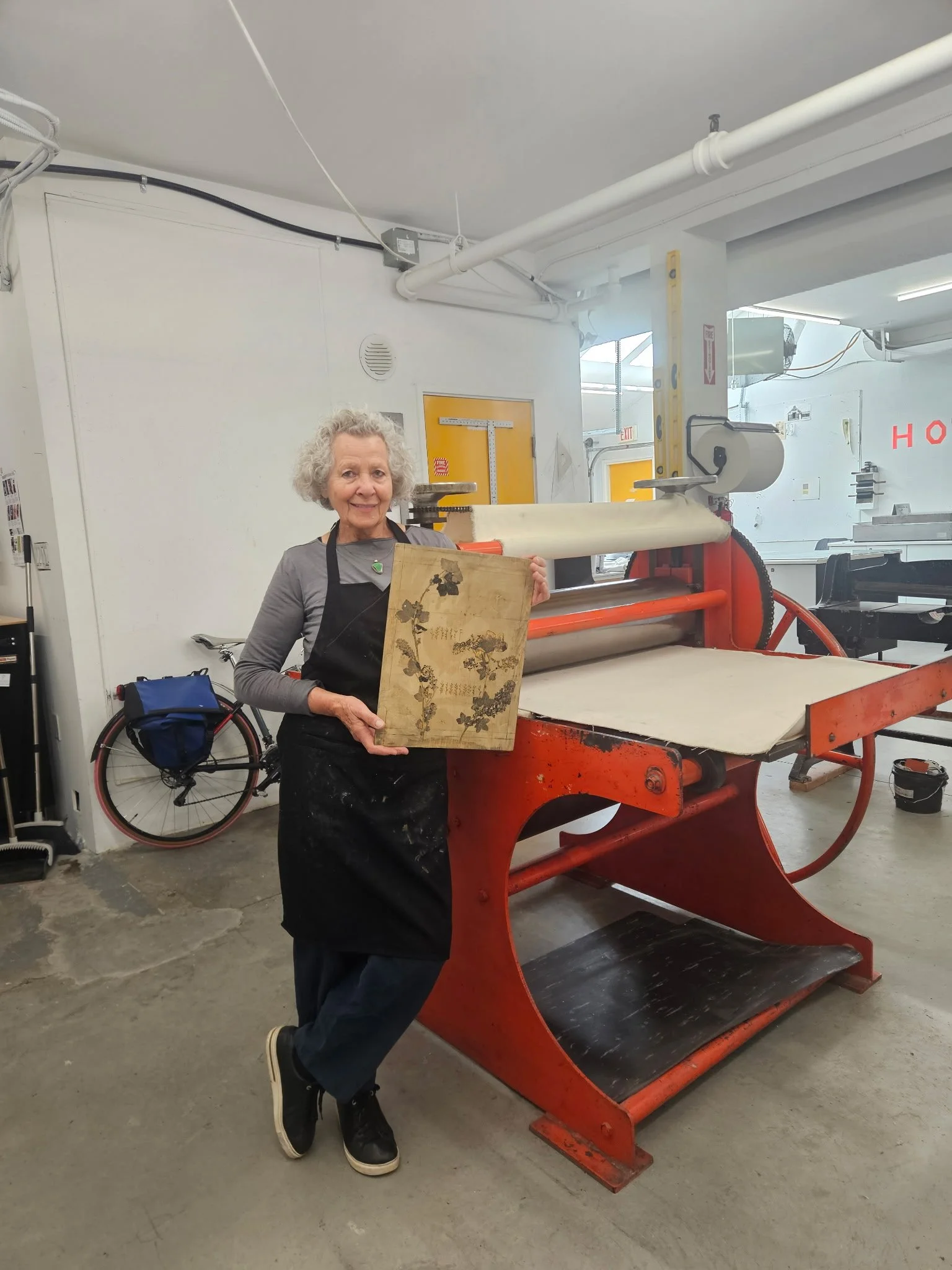 Julie is a print and paper-based artist who studied at the Banff Centre, Alberta and received her BFA from Queen’s University with a major in printmaking. She has had solo shows in over 22 public galleries in Canada and participated in well over 45 juried exhibitions, including 23 international credits. Julie has taught workshops across Canada for over 35 years and has been a popular Artist in Residence with the Vancouver School Board for over a decade.