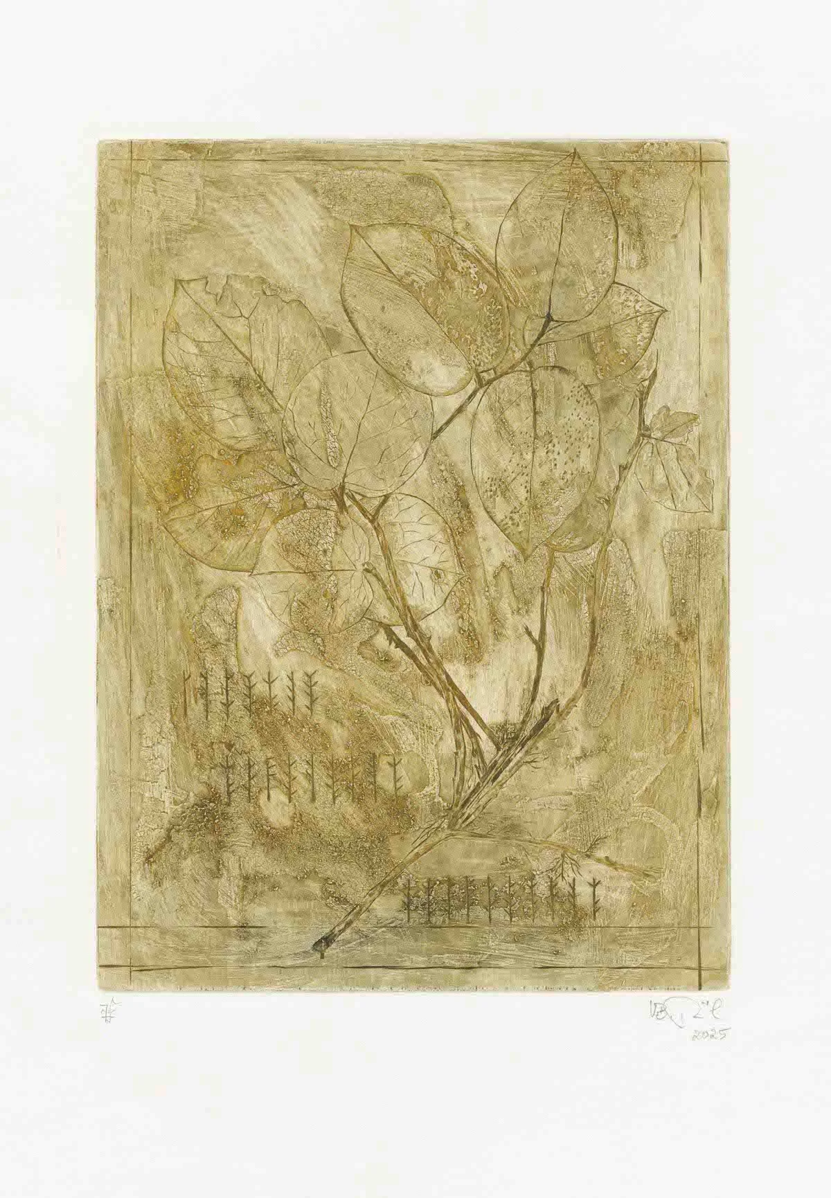 Medium: Woodcut-intaglio (own technique) printed from carved wooden matrix on Hahnemuhle copperplate paper